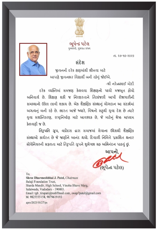 It is a matter of great pride to acknowledge the remarkable journey of Balaji Education Campus, Vadodara, which has been steadfastly dedicated to the cause of quality...